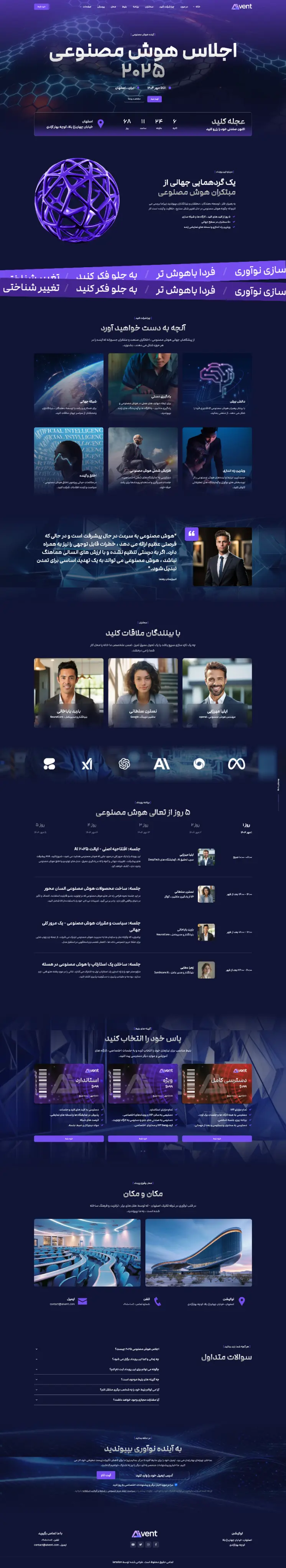 چه بخوای یک رویداد بزرگ برگزار کنی یا جلسات کوچکتر، Aivent ابزار قدرتمندی ست که بهراحتی وبسایت حرفهای و جذاب برای رویدادت میسازد. این قالب بهصورت کامل سازگار با راستچین عرضه شده، یعنی تمام بخشها از هدر تا فوتر، منوها و فرمها، برای کاربران فارسیزبان به شکلی دقیق و بینقص نمایش داده میشوند.