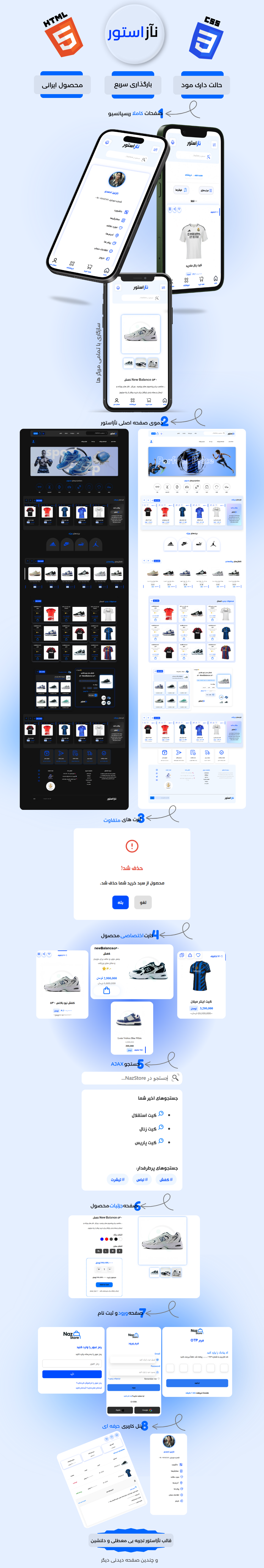 اگر به دنبال یک قالب HTML سبک، سریع و حرفهای هستید که در حالت روشن چشمگیر و در حالت تاریک نیز کاملاً جذاب باشد، «نازاستور» دقیقاً همان گزینهای است که به آن نیاز دارید. این قالب فروشگاهی مدرن و کاملاً واکنشگرا با بهرهگیری ازHTML5، CSS3 و JavaScript و بدون اتکا به هیچ فریمورک سنگین طراحی شده است تا تجربهای روان، کارآمد و چشمنواز را برای کاربران فراهم کند.